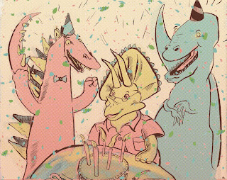 Here's a greeting card I've done for mini jake ... and just for laughs the Orange Dinosaur of Route 1, Saugus Mass.